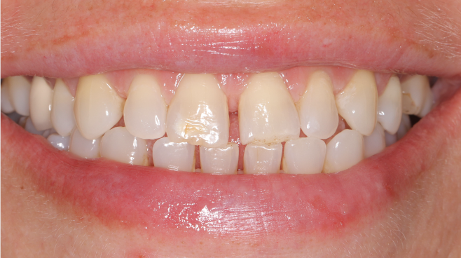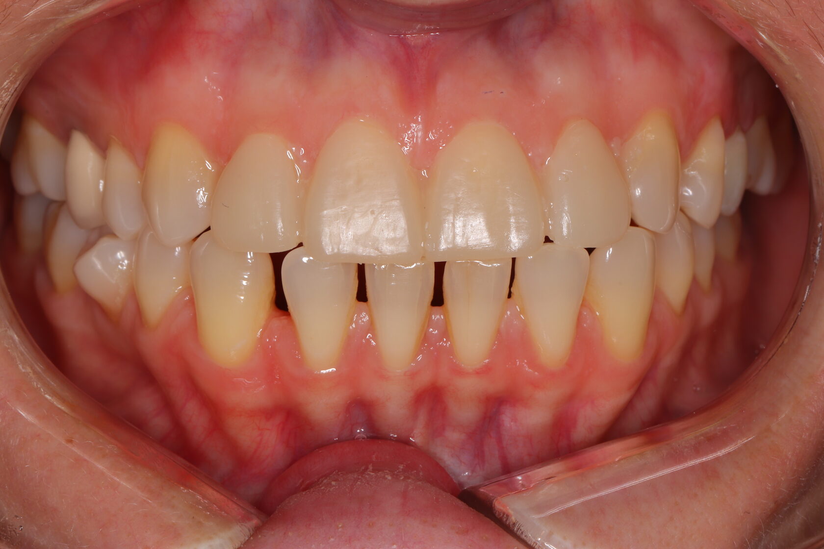 Пациент обратился с целью улучшить эстетику передних верхних зубов, закрыть промежутки.