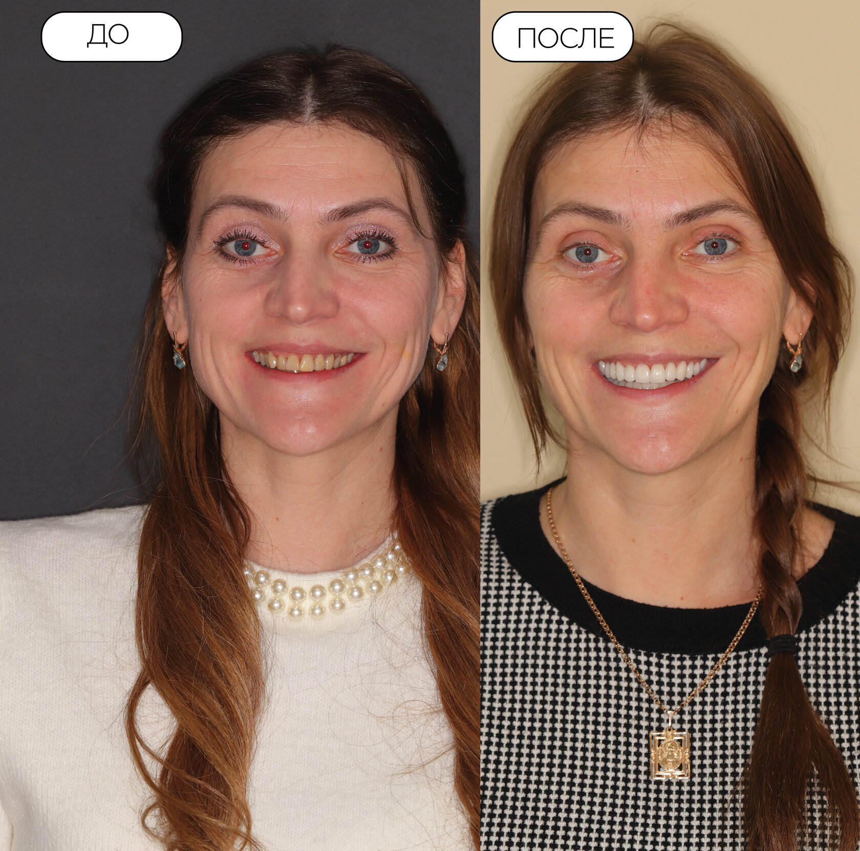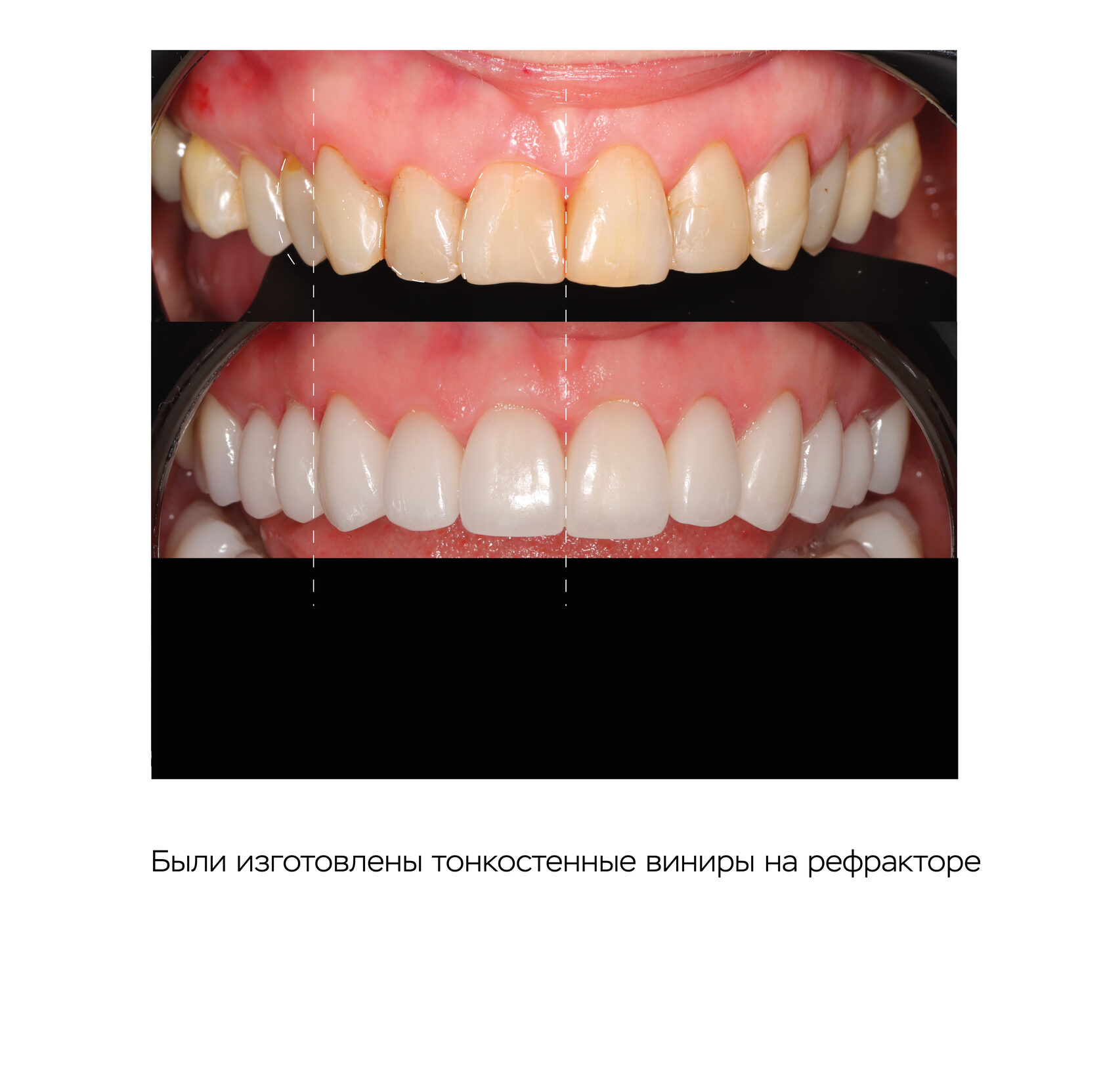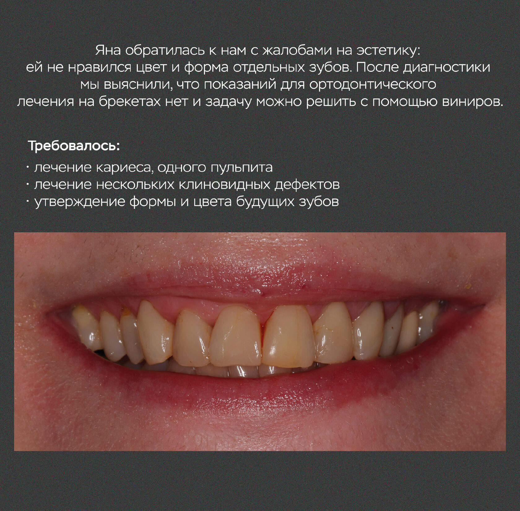 И небольшую скученность, форму и цвет было решено исправить с помощью виниров.