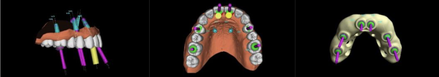 Для первичной операции был изготовлен индивидуальный хирургический шаблон (по которому хирург, как по навигатору, точно выполняет установку имплантатов), также до операции были изготовлены временные зубы, чтобы их можно было зафиксировать сразу после операции.