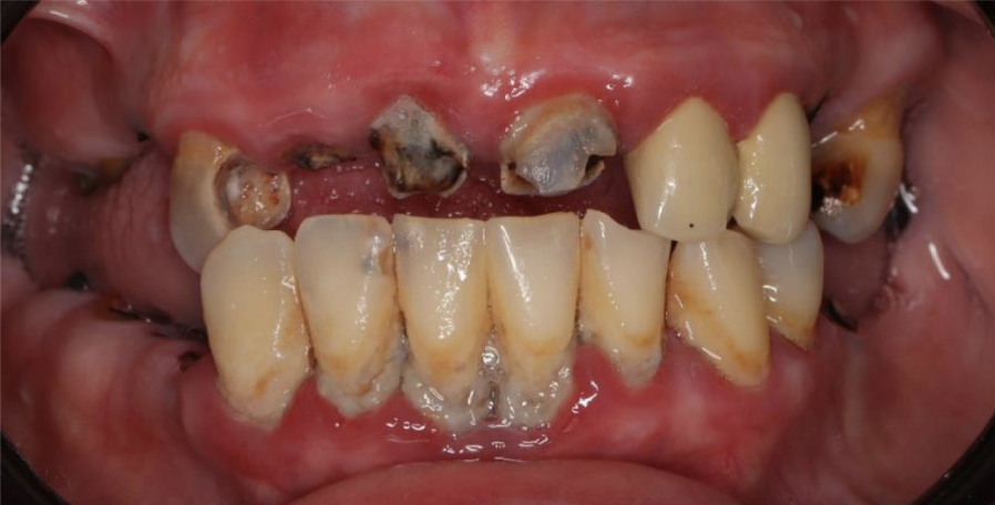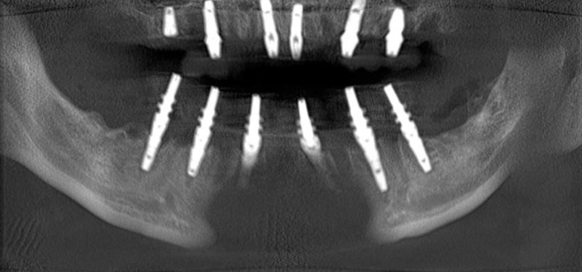 Было принято решение об удалении всех зубов и восстановлении жевательной и эстетической функции с помощью имплантатов.